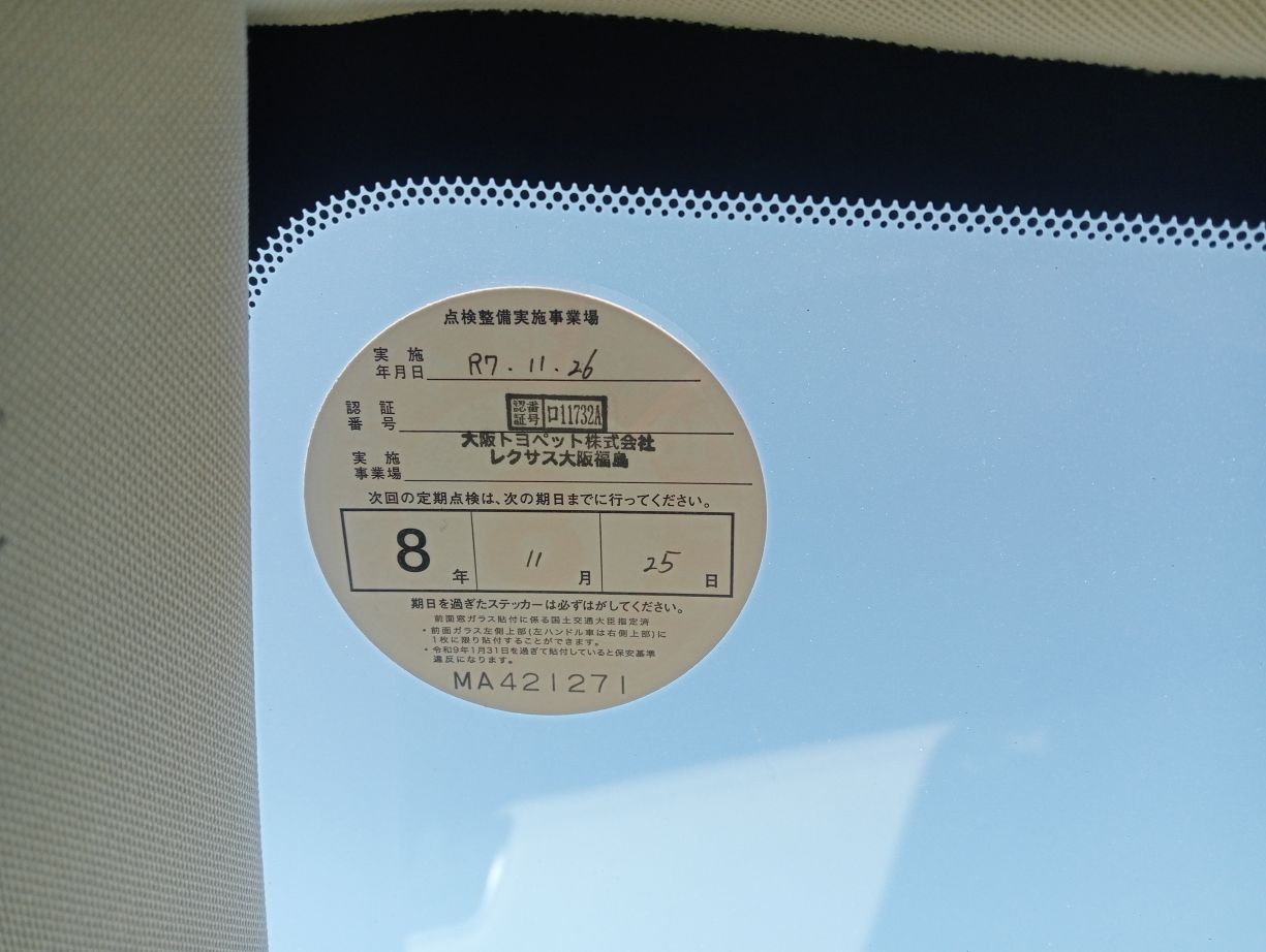 お客様- ・運転席、助手席のシート全体の写真と全席のスレ、傷、シミ部分があればその部分の写真 ・フロントガラス左上部分の点検ステッカーの写真 ・点検記録簿、保証書、説明書の有無 ・ワンオーナー車両か複数オーナー車両か。 ・室内の匂いの有無 ・純正フロアマットの有無