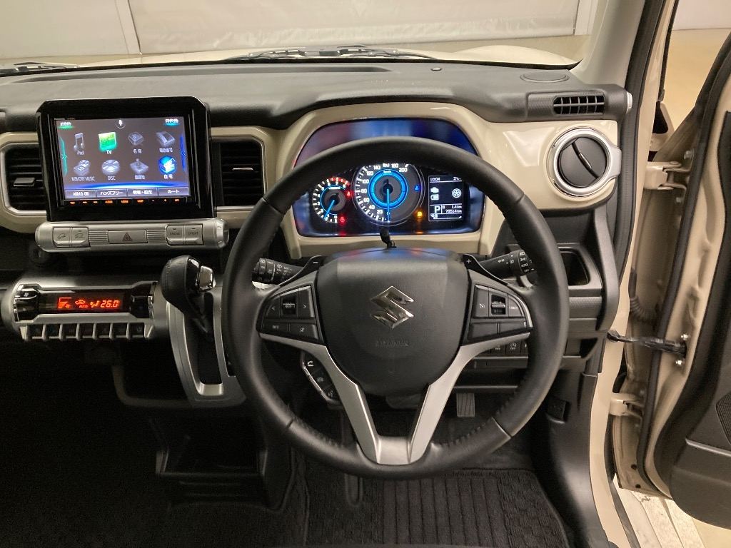 エンジン ハイブリッド 排気量 1,000cc 駆動方式 4WD ミッション インパネAT6 ボディカラー ベージュツートン ドア枚数 5枚 乗車定員 5名 全長 376cm 全幅 167cm 全高 170cm キズ・ヘコミ
